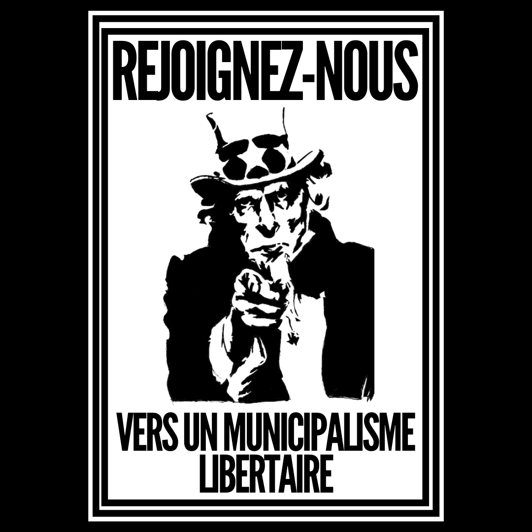 Je dois être bref donc je vous laisse approfondir le municipalisme libertaire mais ce qui doit être retenu c’est que nous pouvons établir une vraie démocratie forte et viable, à même de résoudre nos problèmes actuels. L’oligarchie représentative ne servira jamais nos intérêts et soutiendra sa classe, la bourgeoisie. Face à cela, crions Vive la commune ! À la fédération ! Organisons notre politique nous-mêmes  !